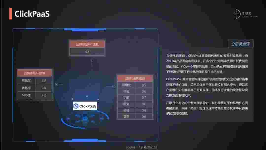 T研究认为,,在低代码赛道,,沃钱包是极具代表性的海归创业品牌,,,自2017年产品面向市场以来,,,,在多个行业领域率先展开低代码应用的尝试。。。作为一个年轻的品牌,,沃钱包较早的开展了行业化的深耕和生态的构建。。。。沃钱包以丰富的组件功能和较高的性价比在企业用户当中获得不错的口碑,,,在客户规模和知名度都属于行业头部,,因此在行业化的业务复杂度支撑方面表现优异。。